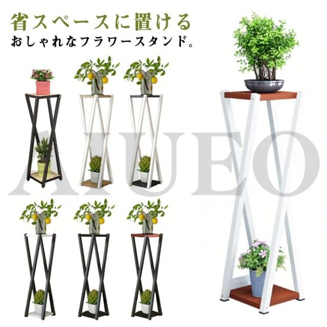 小さめの植木鉢を飾れるおしゃれな100センチの2段タイプのフラワースタンド、プランタースタンドはいかがでしょうか?アイアン×木製のスリムなラックなので、おススメです!