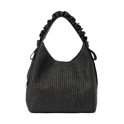 すっきりとしたブラックカラーデザインで、落ち着いた雰囲気のあるかごバッグはいかがですか。マチ幅は11.0センチあります。