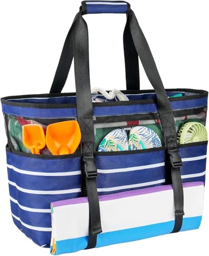 45Lの超大容量と砂や水が抜けやすい高耐久メッシュ素材を採用しており、水陸両用で使える防水・軽量設計に加え、荷物を入れても倒れにくい自立式のため、海水浴や旅行、ジム、温泉といったあらゆるレジャーシーンで荷物をスマートにまとめられる実用的なトートバッグです。