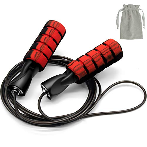 高密度スポンジを使ったグリップは運動中汗をかいてもしっかり吸収してすべりにくい特徴があります。長時間のトレーニングに向いた縄跳びです。