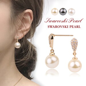 スワロフスキーのピアスです。1粒パールが上品で、揺れるデザインが女性らしい印象です。ギラギラ感がないので、セレモニー用にお勧めします。